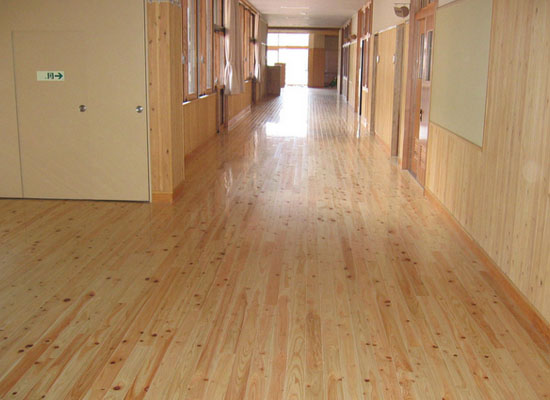 5.原木地板安裝。用釘打在板的四側邊上,注意,每塊板只能用兩小點白乳膠。因為白乳膠是水性的,太多會使木板受潮起拱。