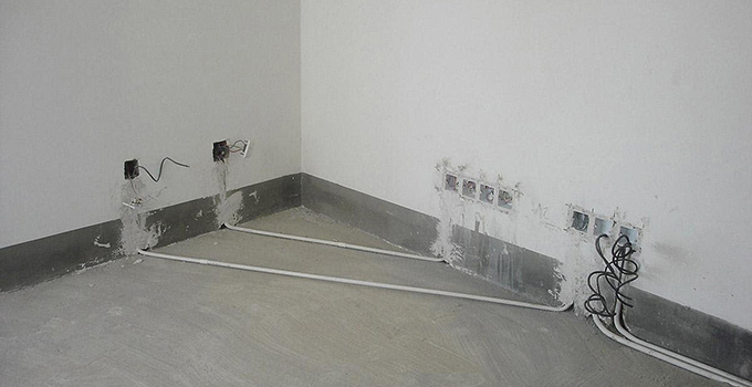 1、墻身、地面開線槽之前用墨盒彈線,以便定位。管面與墻面應(yīng)留15mm左右粉灰層,以防止墻面開裂。