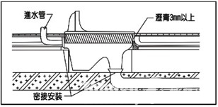 (5) 依下圖所示、于馬桶與混凝土或灰泥接觸部份涂滿厚3mm以上之彈性防水物質,如瀝青或油毛氈之類。