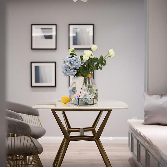 ??餐廳的空間不大,但非常時尚和浪漫。餐廳設(shè)計(jì)的一個靠坐,靠墻設(shè)計(jì)的卡座坐在上面也是很舒適,大理石臺面?zhèn)€性化餐椅和餐桌。花瓶上的花束裝飾使小餐廳非常浪漫和有情調(diào)。