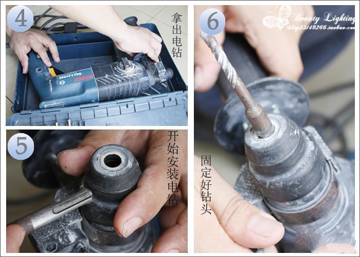 注意事項:天花板上的孔一般打6mm,安裝是要選擇適合的電鉆規(guī)格