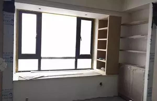 餐廳有個大大的飄窗,準備將飄窗利用起來,做個嵌入式柜子,為了多一些收納空間,還做了一個嵌入式的餐邊柜。