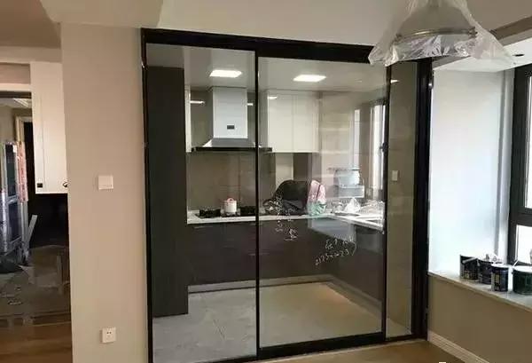 廚房選的玻璃推拉門,與餐廳相連,更加通透明亮。