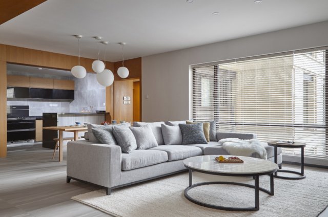 此類戶型通常客廳的面積會寬闊一些,可以選擇體積中等的二人沙發或者三人的,最好也選擇分體式的,這樣可以根據客廳的形狀靈活的組合。