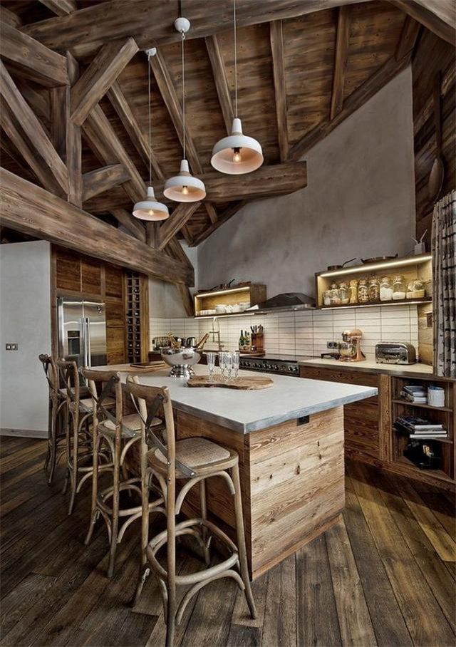 誰不喜歡廚房質樸的感覺?感覺很好,看起來很好,而且很容易實現。對于現代的鄉村風格,可以添加傳統的木質天花板,并搭配白色或黑色瓷磚。由于兩種顏色的對比,瓷磚會感覺更大。