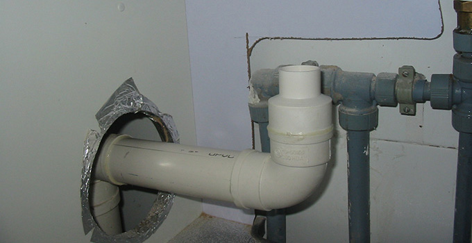 下排水:下排水是排水口在地面上,下水管豎著穿過樓板,管道直接通向樓下,裝下排水我習慣把返水彎裝在最底下,這樣要是還有別的下水,可共用一個返水彎。
