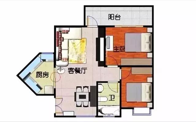 這種戶型面積利用也會有問題,很難找尖角家具或電器放進去,一般需要定制家具重新設計。