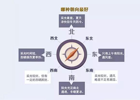 包括房子整體以及房子各個空間的朝向,優劣順序一般為正南、東南、東、西南、北和西。