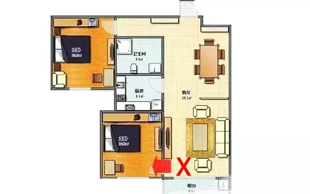 戶型缺角嚴重,僅一個朝南的房間,采光同樣不好,而且缺角寓意不吉祥。