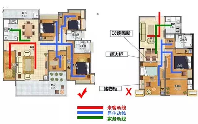 家居動線就是你在家里為了完成一系列動作而走的路,主要看來客動線、家務動線、居住動線(包括臥室、衛生間、書房等領域),好戶型從入戶門進客廳、臥室、廚房的三條條線不會交叉。