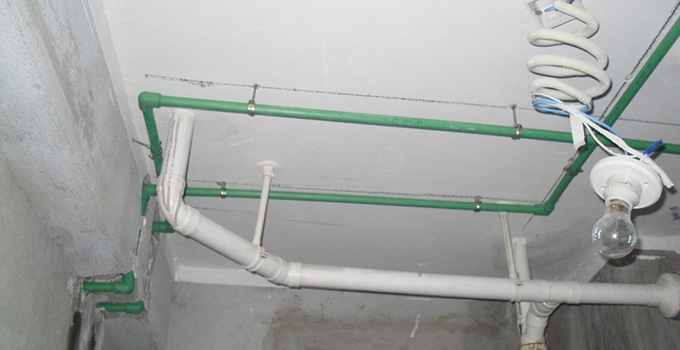 廚房和衛生間的水管,距出水口1米之內不固定,因為之后鋪貼貼磚,不能保證出水口和瓷磚相平,因此水管需要瓦工去固點,出水口的工藝要求是出墻面1毫米。在今后使用過程中,如有接口不嚴現象,水會順著墻根往下滲,不會滲到鄰居家和樓下。