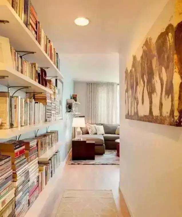 家里沒有獨立的書房在走廊做個簡單的書架,擺上愛看的書籍,小空間作用最大化