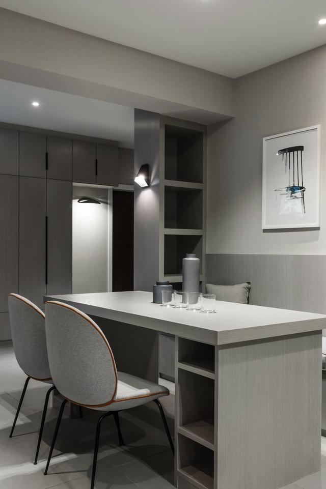 黑白灰色系風(fēng)格的房子裝修設(shè)計(jì)是是一種簡(jiǎn)約自然但不簡(jiǎn)單的生活理念,讓人們遠(yuǎn)離喧囂的生活帶來的緊張與浮躁。設(shè)計(jì)值通過幾何元素作為本案的重要設(shè)計(jì)理念被融入于空間之中,居住者可以在其中找到不少格狀家具、燈具。幾何感強(qiáng)烈的茶幾、邊幾,現(xiàn)場(chǎng)定制的餐桌等設(shè)計(jì)契合。