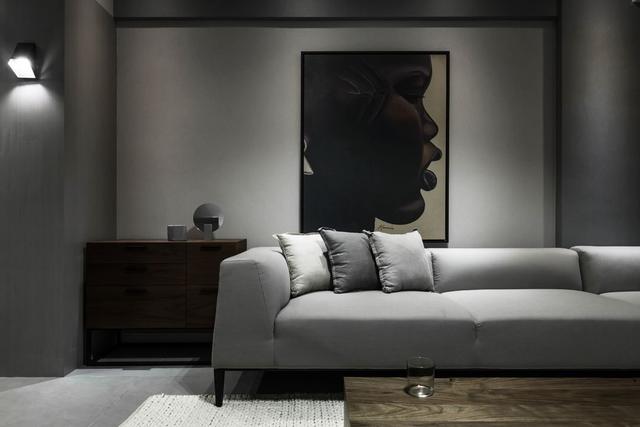 客廳里不乏一些個(gè)性元素,黑人畫像隨意放置與沙發(fā)后,勾勒出了另一幅獨(dú)特的畫面。