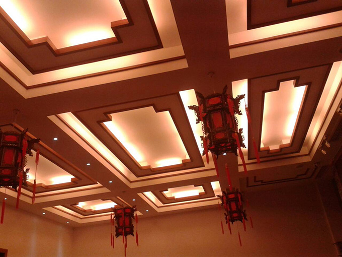 (1)比如在做背景墻時,應先用把木龍骨打好,檢查確認牢固后,才能在其上架石膏板,兩塊石膏板之間必須留0.5-0.8cm的縫隙,否則將來容易膨脹起拱。