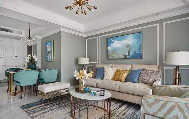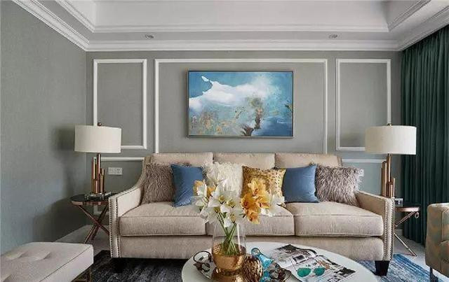 我們家是一個三居室,房間面積是90㎡。正如大家看到的這個客廳,整體的墻面漆和吊頂這些都是按照簡約風(fēng)格的設(shè)計來做的,但是因為沙發(fā)的顏色錯了。本來計劃是買一款灰色的沙發(fā),這樣比較符合現(xiàn)代簡約風(fēng),但是因為顏色錯了,頓時就沒了那種感覺,顯得和周圍的家具很不搭,所以經(jīng)過一些裝飾點綴。直接做成了美式簡約風(fēng)。