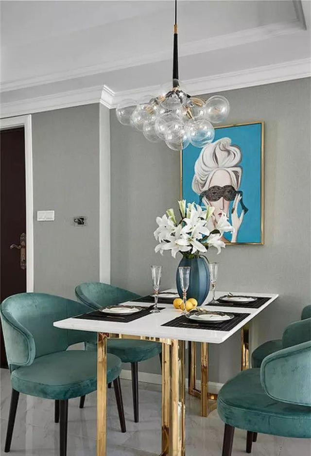 從客廳的角度去看餐廳,就可以發(fā)現(xiàn)他們之間的銜接比較巧妙,色彩的過渡顯得比較協(xié)調(diào)。當(dāng)初就是因為錯買了客廳的家具,本來預(yù)定好的白色餐桌,最后只能換成這款墨綠色椅子的。
