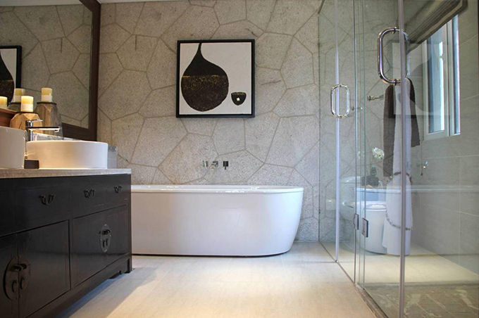 3、衛(wèi)生間洗浴時(shí)水會(huì)濺到鄰近的墻上,如沒(méi)有防水層的保護(hù),隔壁墻和對(duì)頂角墻易潮濕發(fā)生霉變。所以一定要在鋪墻面瓷磚之前,做好墻面防水。一般防水處理中墻面要做30厘米高的防水處理,但是非承重的輕體墻,就要將整面墻做防水,至少也要做到1.8米高。與淋浴位置鄰近的墻面防水也要做到1.8米高,若使用浴缸,與浴缸相鄰的墻面防水涂料的高度也要高于浴缸的上沿。