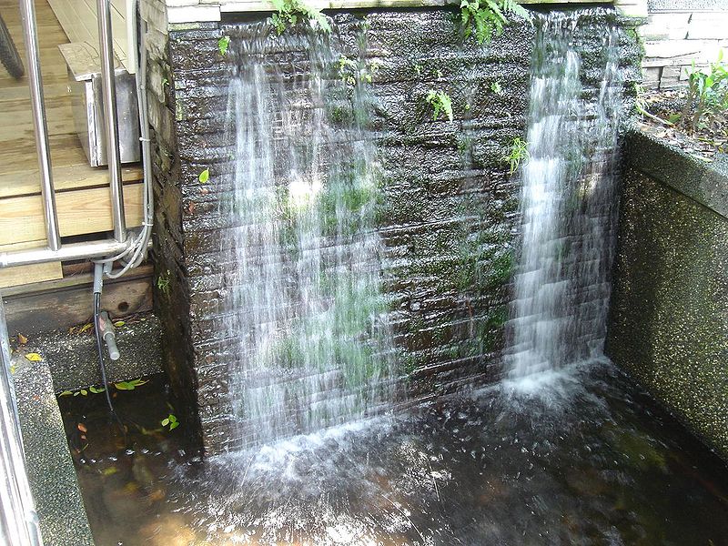 按照物理力學(xué)原理減緩水流速度,達(dá)到了克服流水的噪音的效果,給人以享受瀑布飛流直下,水霧蒙蒙的感覺(jué)。按照流水張力的原理使水流橫向拉伸,使流水達(dá)到更加完美的效果;巧妙的燈飾流光溢彩,更使其成為可供欣賞的精美藝術(shù)品,給人以怡人的濱海氣息。