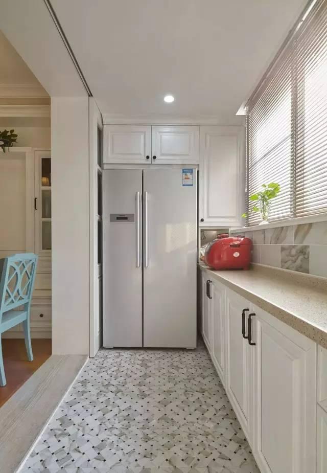 廚房的設(shè)計(jì)延續(xù)了客廳的風(fēng)格,簡潔明快、清新淡雅,半開放式設(shè)計(jì)保證了餐廳的采光,讓空間的通透感更強(qiáng)。
