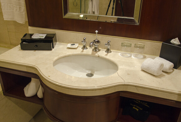 洗手盆的池邊須稍高于臺面,但與臺面相接處一定要平滑,目的在于將濺到臺面上的水擦回池子里去時不受阻礙,同時便于臺面的清洗。臺面本身一定要選用表面光滑的材料,邊緣及兩角必須圓滑,以免磕碰。洗手盆本身的光潔度也非常重要,光潔度高的池面使水里的雜物不易附著表面,相對來說減少了需要擦洗的次數(shù)。