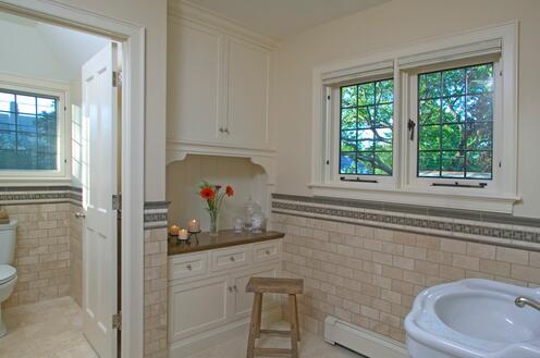 腰線磚多為印花磚(墻磚的一種)規格:墻磚一般為200*300、250*330、300*450、300*600、250*400等。為了配合墻磚的規格腰線磚定為6厘米高,20厘米寬的幅面,它的作用就像一根美麗的腰帶,環繞在墻面磚中間,為單調的墻面增色,改變空間的氣氛。