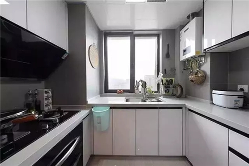 以暖灰色為主調,增加了儲物空間,櫥柜、電器設備齊全,女主人可以盡情施展廚藝。