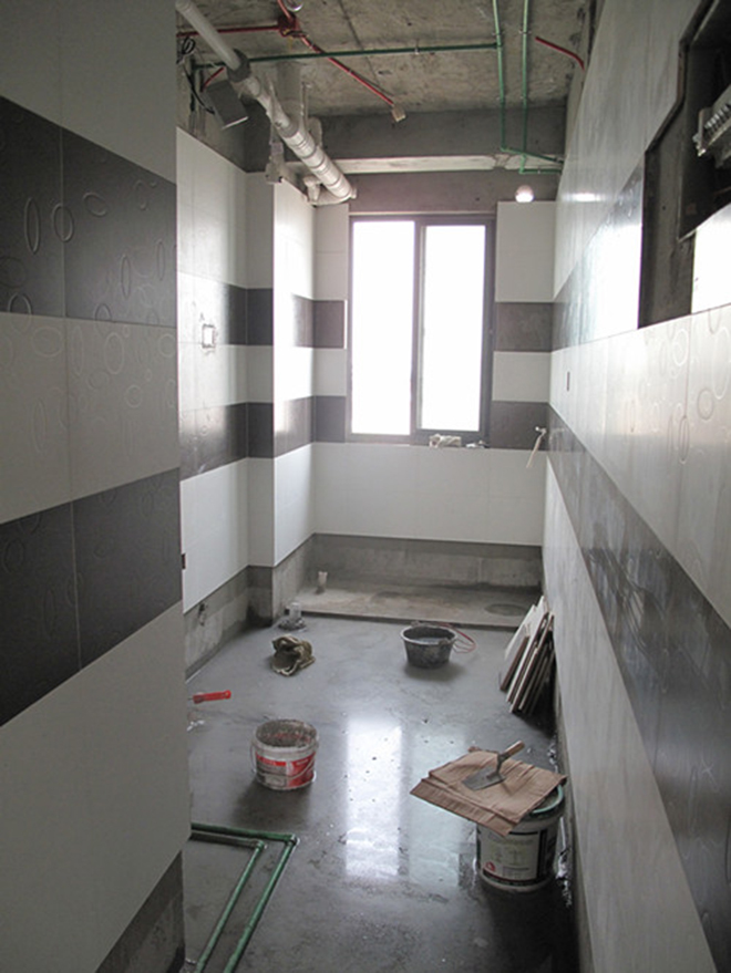 排磚要求,先貼墻面磚,如是浴缸或淋浴的地方要求刷防水1.8米高。地面防水涂料,墻面留30公分與地面一同進行涂刷,涂刷防水涂料時,要求貼防水大理石。