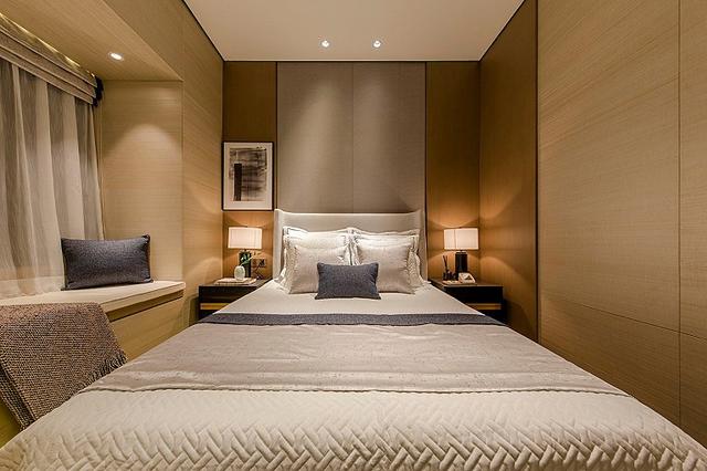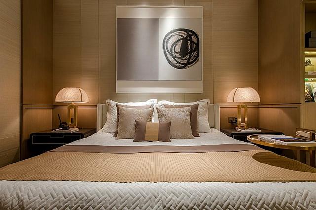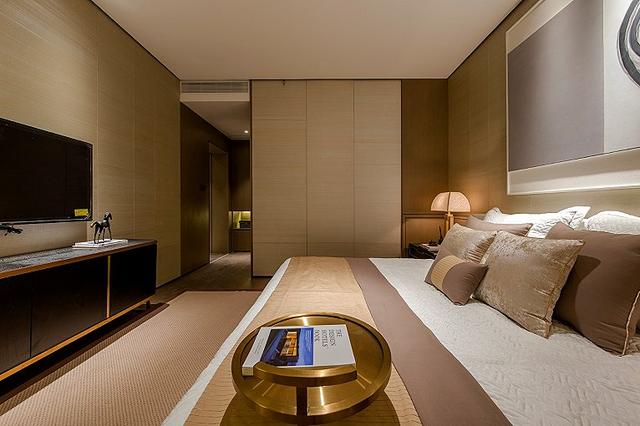 這套家居為大戶型空間,臥房經(jīng)分區(qū)切割后,劃分為主臥、父母房、男孩房以及女孩房,每個臥房都根據(jù)不同的需求設(shè)置不同的風(fēng)格與功能。主臥的空間線條干凈簡潔,如澄瑩水色平流緩進,設(shè)計師再采用淡雅的色彩語言增添溫潤質(zhì)感,摒棄過于繁瑣的裝飾,以精美壁畫、造型不一的坐燈以及詩意陳設(shè)物品來讓整個空間顯得清靈雅致,又極具現(xiàn)代機能。同時還配套大衣帽間,里面兩個跨度三米的大衣柜帶來奢華的震撼感,加上極具功能性的配置,更顯摩登精致。