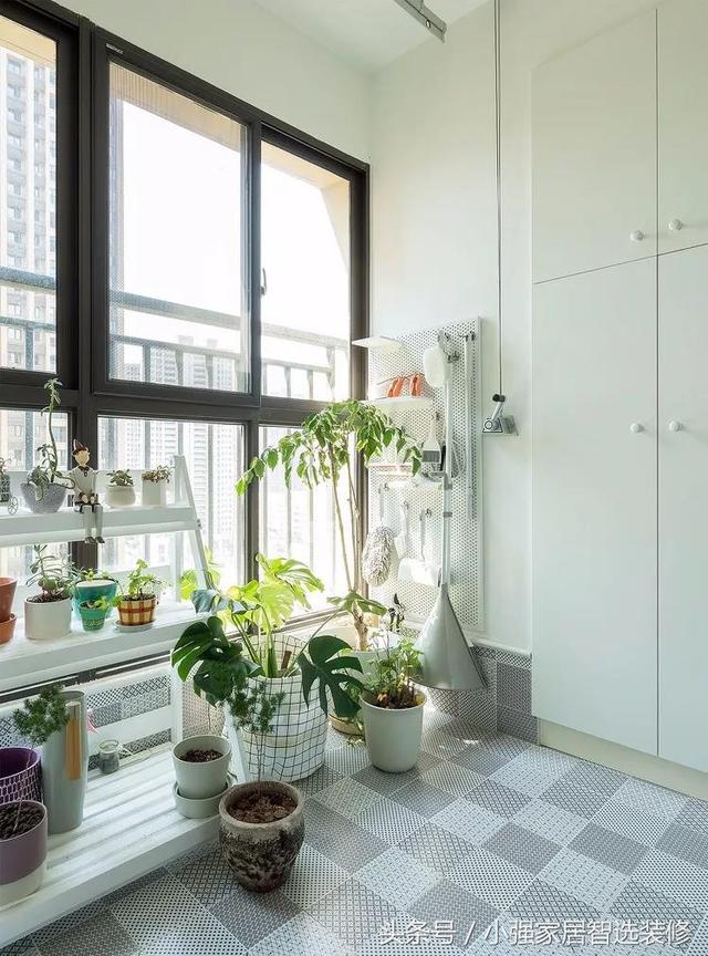 文藝小陽臺設計,"磚"扮空間,淡雅的成品地磚,鋪貼的美觀大方。
