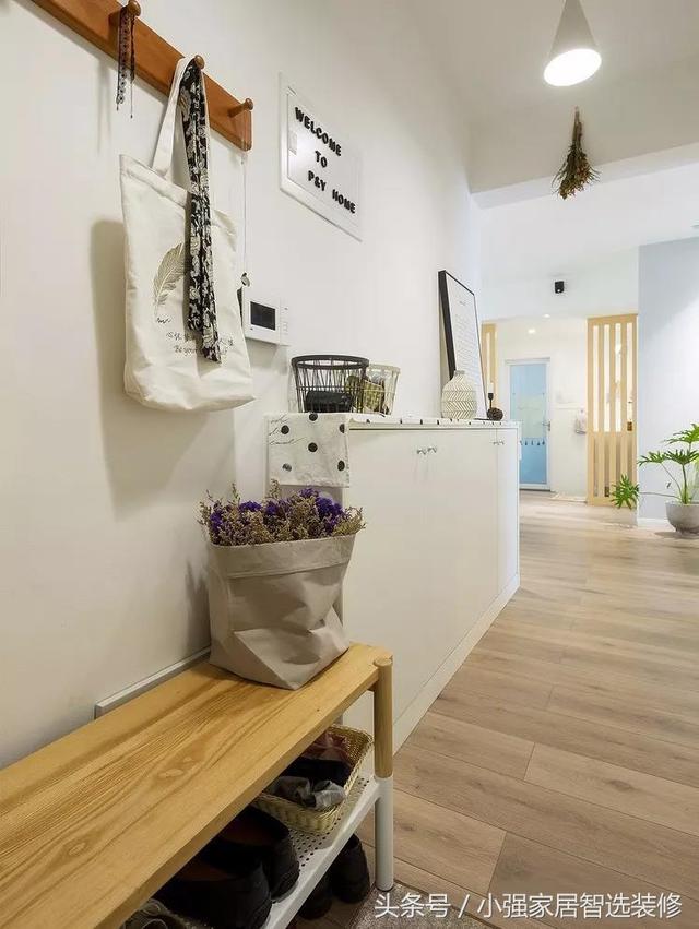 富有文藝氣息的布藝包包,紫色的干花束,簡約的裝飾畫,每一件陳列的物品,都可見房主對家給予的溫暖,對生活的熱情。