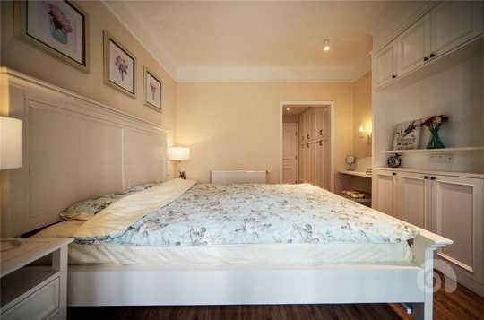 主臥室采用淺咖啡色的墻面顏色,溫馨感十足。主睡眠區(qū)域沒有大衣柜,收納功能全部被設計安排到了進主臥的走道和一個小的衣帽間里面。