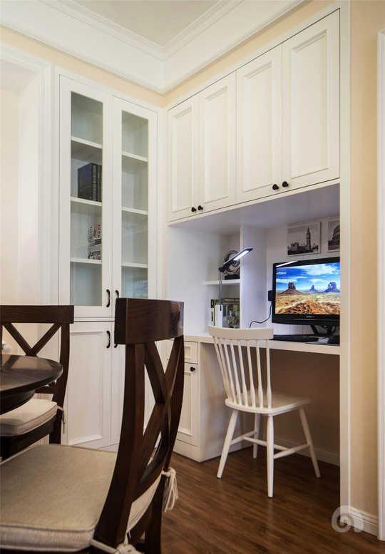 客廳的書桌主要滿足家里大人在客廳上網(wǎng)學習的需要,因為充分利用了墻面的深度,所以在實現(xiàn)強大功能的背后一點都不擠占餐廳的空間。