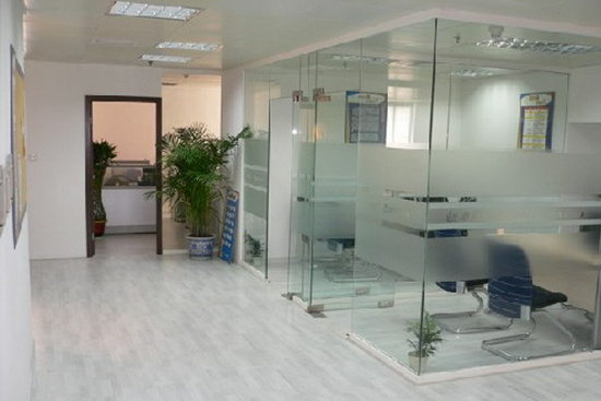 1、放線定位:無框玻璃門在安裝之初,就必須對固定玻璃隔斷及活動玻璃門扇統一放線定位,待確定門框位置,準確地測量地面標高及門框頂部標高。