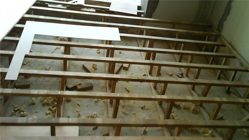 2、檢查木龍骨的間距是否符合木地板安裝的要求(每條地板最少要架在兩條龍骨上);