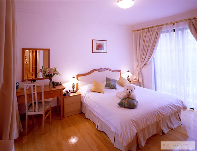 臥室是休息睡眠的地方,需要營造寧靜悠閑的環境氛圍,所以通常是選用純度相對高一些,明度也較高的色調,大多以暖色調為主,比如米黃,淺橙,粉紫等等。而對于光線好的臥室,局部使用深色更能體現房間的個性,試想慵懶的早晨,陽光照進房間,一睜眼看見的是一片純度很高的藍,或者綠,眼前一亮,從睜眼開始就愉悅了這一天的心情,如果是粉粉的顏色,不但刺眼,而且沒有生機,所以顏色跟房間的采光有很大的關系,但切忌用大紅等過于熱情的顏色,休息的地方要安靜,累了一天需要休息的時候,如果那種感覺是躺在靜靜的湖面,微風輕撫,這感覺是何等的寧靜愜意。