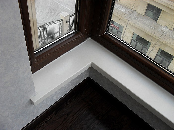 5、窗臺板安裝:按設(shè)計要求找好位置,進行預(yù)裝,標高、位置、出墻尺寸符合要求,接縫平順嚴密,固定件無誤后,按其構(gòu)造的固定方式正式固定安裝。