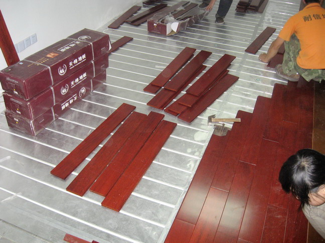 地板沒有鋪平整,地面不平整會造成地板和龍骨懸空,踩踏的時候會發出響聲,長期會造成龍骨變形。