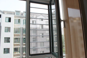 3、鋁合金門窗框安裝必須牢固,預埋件的數量、位置、埋設方式與框連接方法必須符合設計要求,在砌體上安裝門窗嚴禁用射釘固定,鋁合金門窗的開啟方向、安裝位置、連接方式應符合設計要求。