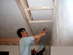 裝訂木頂角線,應(yīng)先在墻面上畫出頂角線的水平線,此水平線必須從地面量起,不得從頂棚面向下量。再沿水平線的上方,每隔500mm左右,在墻體上鉆孔,在孔內(nèi)塞入木楔。一個房間的打孔、賽木楔工作完成后,再將木頂角線遞上去,對準(zhǔn)底邊的水平線,用圓釘將頂角線定牢固與木楔上,釘帽砸扁,沖入木內(nèi),頂角線接長應(yīng)平頭相接。頂角線垂直相接,應(yīng)將其端頭鋸成45°斜面,曲線面要對齊。