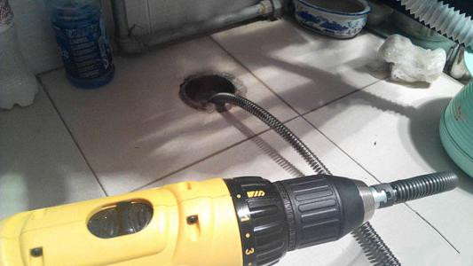 先把一根直徑接近排水口的圓木插入水管中,并在水池中放入一定量的水,不間斷地迅速上下抽動圓木,在吸力和壓力的作用下,管道中的污物就會被沖走。