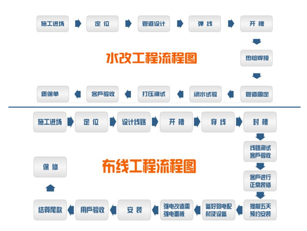 在裝修開(kāi)工之前,水電改造的詳細(xì)方案是一定要完成的,請(qǐng)記住是詳細(xì)方案,不是草案。在沒(méi)有詳細(xì)的水電改造方案就動(dòng)工裝修,絕對(duì)是不明智的,邊做邊想是裝修工程最忌諱的事情,沒(méi)有詳細(xì)的方案,在水電改造的時(shí)候會(huì)遺漏很多問(wèn)題,到想起的時(shí)候才發(fā)現(xiàn)已經(jīng)做的差不多,卻又不的拆除重來(lái),其實(shí)帶來(lái)的確是雙重?fù)p失。