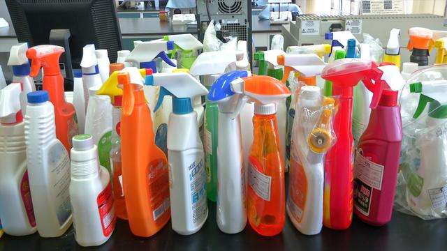 噴灑一定量的清潔劑在瓷磚上,再貼上廚房紙巾,約10分鐘后將紙巾撕掉,再用濕布努力擦拭即可。