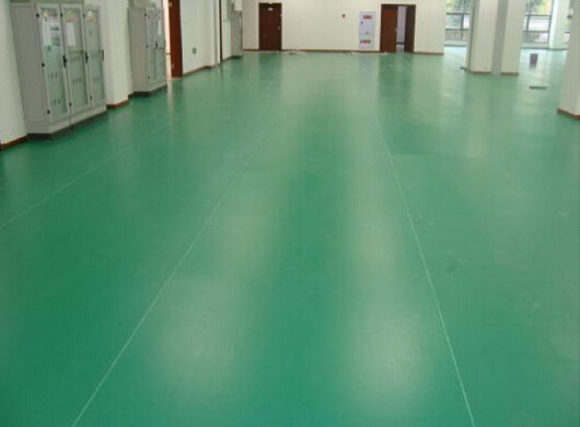 ③接地導電網鋪設后,清潔干燥地面,涂導電膠液,晾干20-30分鐘,以手不粘為止,防靜電地墊底面(黑色面)操作相同(涂導電膠一次即可),然后把防靜電膠板和地面粘合,再用重輥滾壓5次,使之防靜電膠板表面整齊平直即可,在常溫下48小時以后便可使用。
