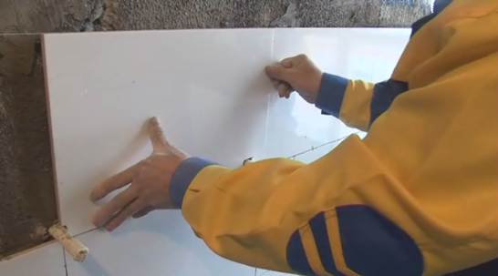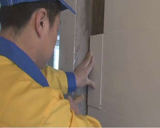 2 、貼標準點:依據垂直和方正吊線用泥餅貼標準點,控制墻磚的出墻厚度和平整度。