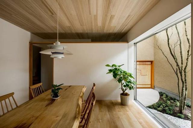 中庭是日式住宅中較為常見的設(shè)計(jì),它不僅可以承載引入光線、溝通視線和豐富空間等多種功能,同時(shí)還能增加室內(nèi)景觀、滿足空間換氣,別有一番生活情趣。