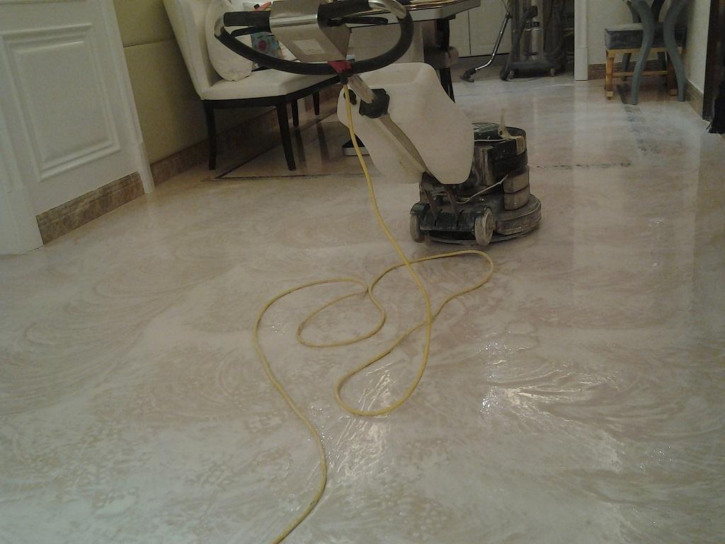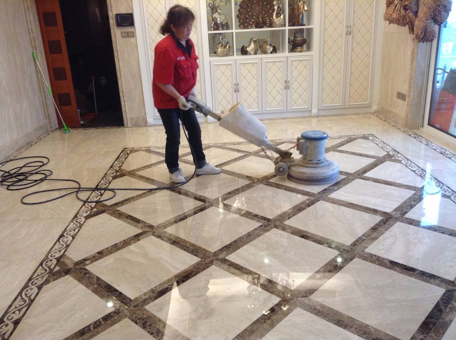 1.先將需要翻新的場所用警示牌圍護起來,避免施工中有人員進出。石材表面清理干凈,可以用清水反復清洗,將石縫中的污垢仔細清理掉。如果地面有打蠟,先將舊蠟去掉。