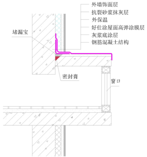 沿飄窗與墻體交接部位剔V型槽,槽內(nèi)用堵漏寶密封;