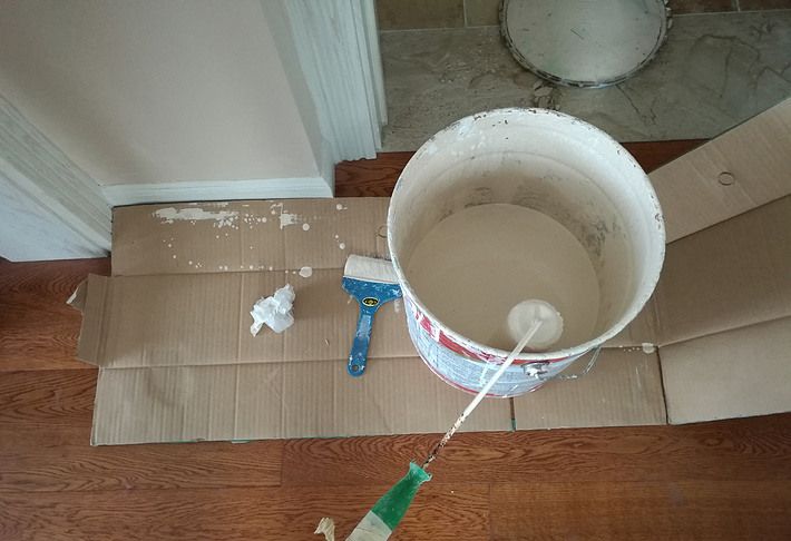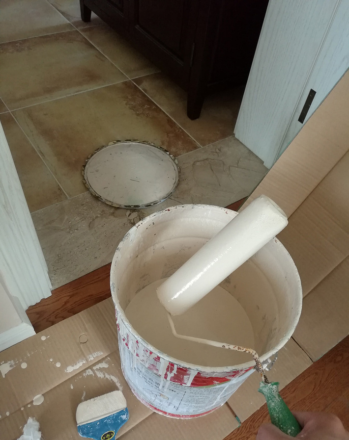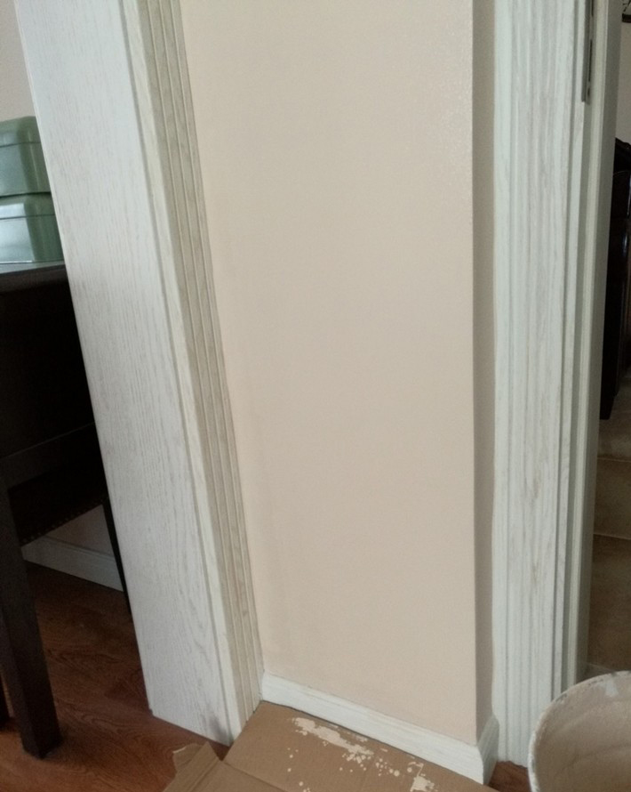 1、踢腳線上邊緣最好貼上美紋紙,以保護踢腳線不粘上乳膠漆(刷之前在地板或者瓷磚上鋪一張包裝用的硬紙板以保護地板和瓷磚)