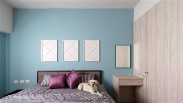主臥采用青色背景墻設(shè)計(jì),給人利落輕爽的感覺(jué),讓業(yè)主每天不管上班多累,回到家里都有一個(gè)舒適愜意的港灣,讓身上的疲憊一掃而光。